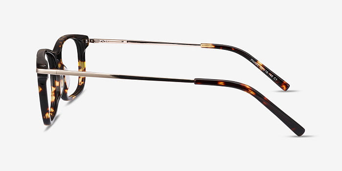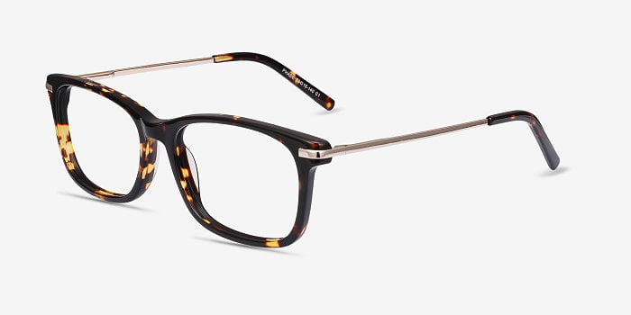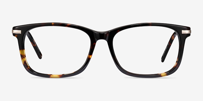 . Os tons fogosos do acetato de tartaruga adicionam um toque elegante a esses óculos de lentes retangulares.